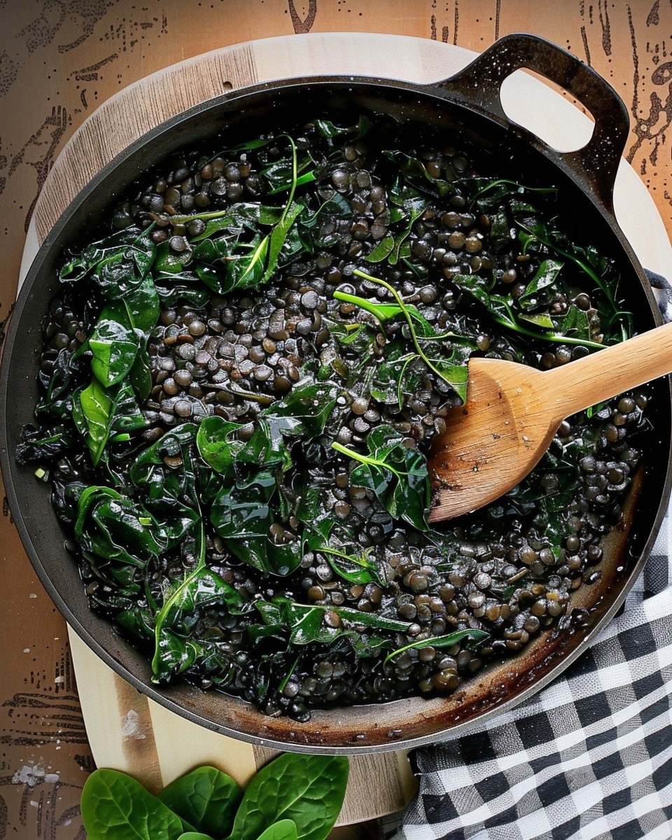 Addictive Black Lentils with Spinach is proof that simple ingredients can create bold, satisfying flavor. With tender lentils, sweet caramelized onions, vibrant spinach, and a creamy base of labneh or lemony yogurt, this dish delivers comfort and balance in every bite. Whether enjoyed as a quick weeknight meal or prepared ahead for easy lunches, it is a versatile recipe you will return to again and again.