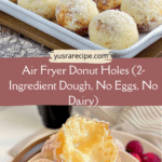 Soft and fluffy air fryer donut holes made with just two simple ingredients. These yeast-free, egg-free, and dairy-free treats are quick to prepare, lightly crisp outside, tender inside, and perfect for coating in cinnamon sugar or filling with jam.
