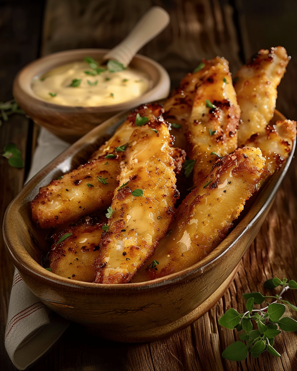 – Crispier coating: Double-dip the tenders (egg → flour → egg → flour).