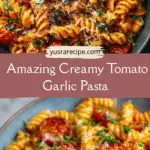 This creamy tomato garlic pasta features a rich, velvety sauce made with ripe tomatoes, fresh garlic, and heavy cream, tossed with pasta and finished with fresh basil. It’s simple to make, packed with flavor, and perfect for a comforting weeknight meal.