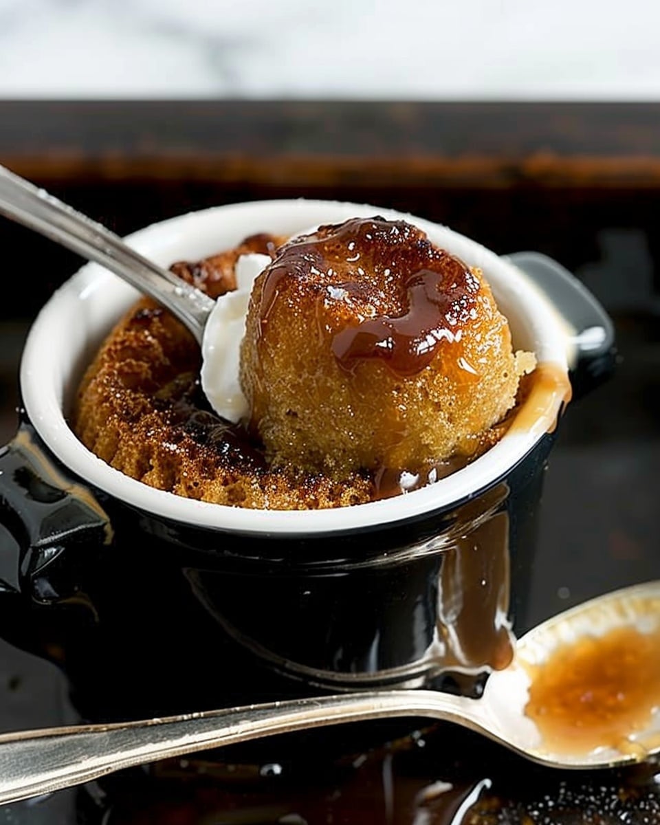 The texture is also unique. Unlike a traditional cake, this dessert is meant to be scooped with a spoon, giving you a combination of soft cake, tender apples, and silky caramel in every bite. It’s especially delicious served warm with cream or vanilla ice cream.