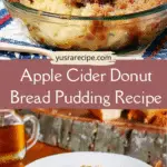 A cozy fall dessert made with apple cider donuts soaked in a rich spiced custard and baked until golden and crisp on top with a soft, tender center. This comforting bread pudding is perfect for holidays, brunch, or using up leftover donuts.