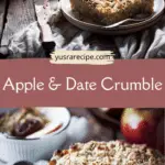 A warm and comforting apple date crumble featuring tender baked apples, naturally sweet dates, and a golden, buttery oat topping. A wholesome dessert perfect for cozy occasions.
