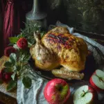 This apple harvest roasted chicken is a cozy, fall-inspired dish that fills the kitchen with the warm aromas of cinnamon, apples, and savory herbs. A whole chicken is stuffed with apple slices and onions, rubbed with ghee and spices, and roasted over a bath of apple cider that infuses every bite with moisture and flavor. It’s the kind of comforting recipe I turn to when I want something hearty, seasonal, and satisfying without being overly complicated.