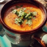 This Armenian apricot and red lentil soup is silky, comforting, and gently surprising. Earthy red lentils, sweet carrots, warm spices, and savory tomato come together in a creamy base, while dried apricots add a delicate fruity sweetness that makes every spoonful memorable.