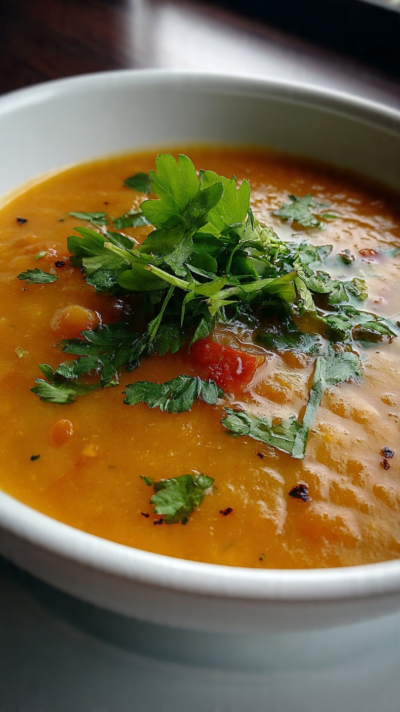 A fragrant and nourishing Armenian-inspired soup made with red lentils, dried apricots, tomatoes, and warm spices. Creamy without dairy and ready in 30 minutes, it’s a comforting and unique dish with a hint of natural sweetness.
