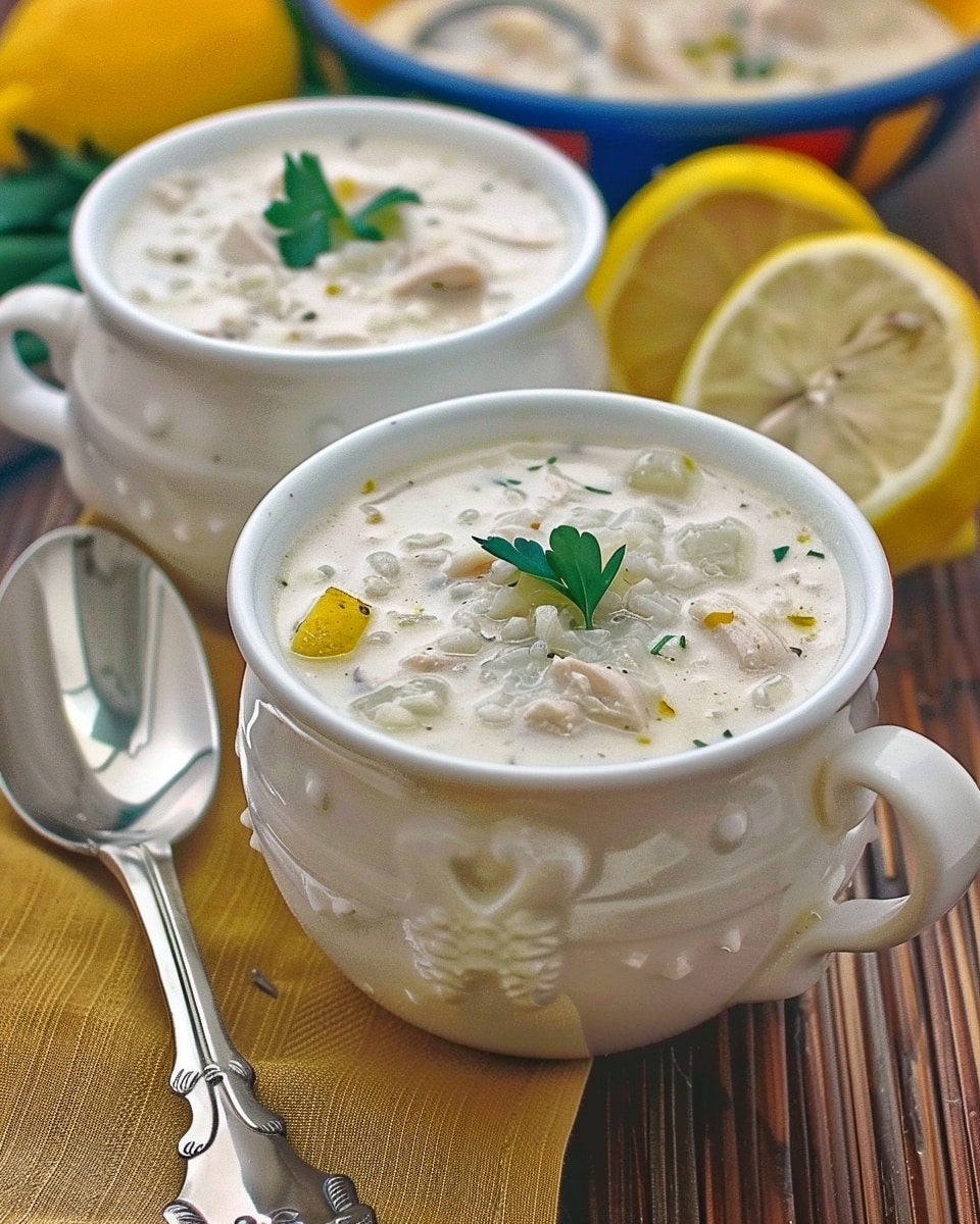 Avgolemono soup is a beautiful twist on classic chicken soup. The combination of eggs and lemon gives the broth a creamy texture without any cream, while the chicken and rice make it filling and satisfying. It is also a great weeknight recipe because it uses simple ingredients and cooks in about half an hour. The flavor is light, lively, and comforting all at once, which makes it a soup people remember after the first spoonful.