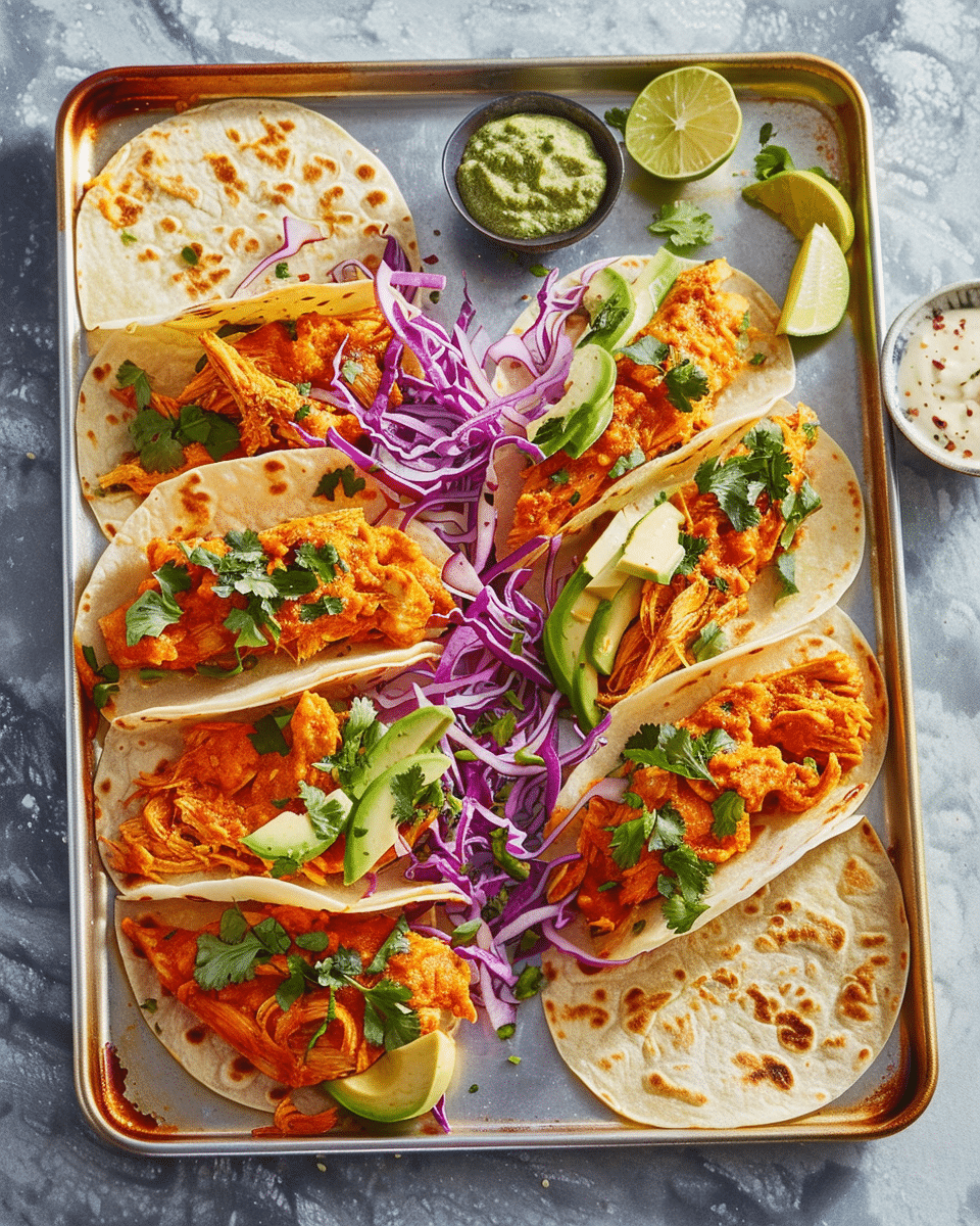 These tacos are incredibly easy to prepare and require minimal cleanup since everything bakes on a sheet pan. Using pre-cooked chicken saves time while still delivering bold, comforting taco flavors. They are family-friendly, customizable with toppings, and ideal for feeding a crowd without standing over the stove.