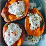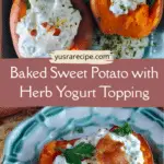 You can swap the parsley and chives for dill, cilantro, or mint for a different flavor. A squeeze of lemon juice in the yogurt topping adds extra brightness. For more texture, top the finished sweet potato with sliced green onions, toasted seeds, or chopped cucumber. If you want a richer topping, use Greek yogurt instead of plain yogurt.