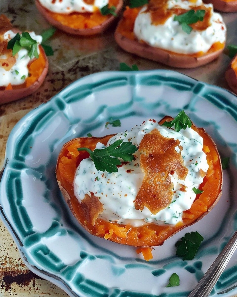 Baked sweet potato with herb yogurt topping is a quick, fresh, and satisfying recipe that proves simple ingredients can make a flavorful meal. Whether you serve it as a speedy lunch, a light dinner, or an easy side, this recipe is one you can return to again and again because it is easy to make, easy to customize, and always comforting.