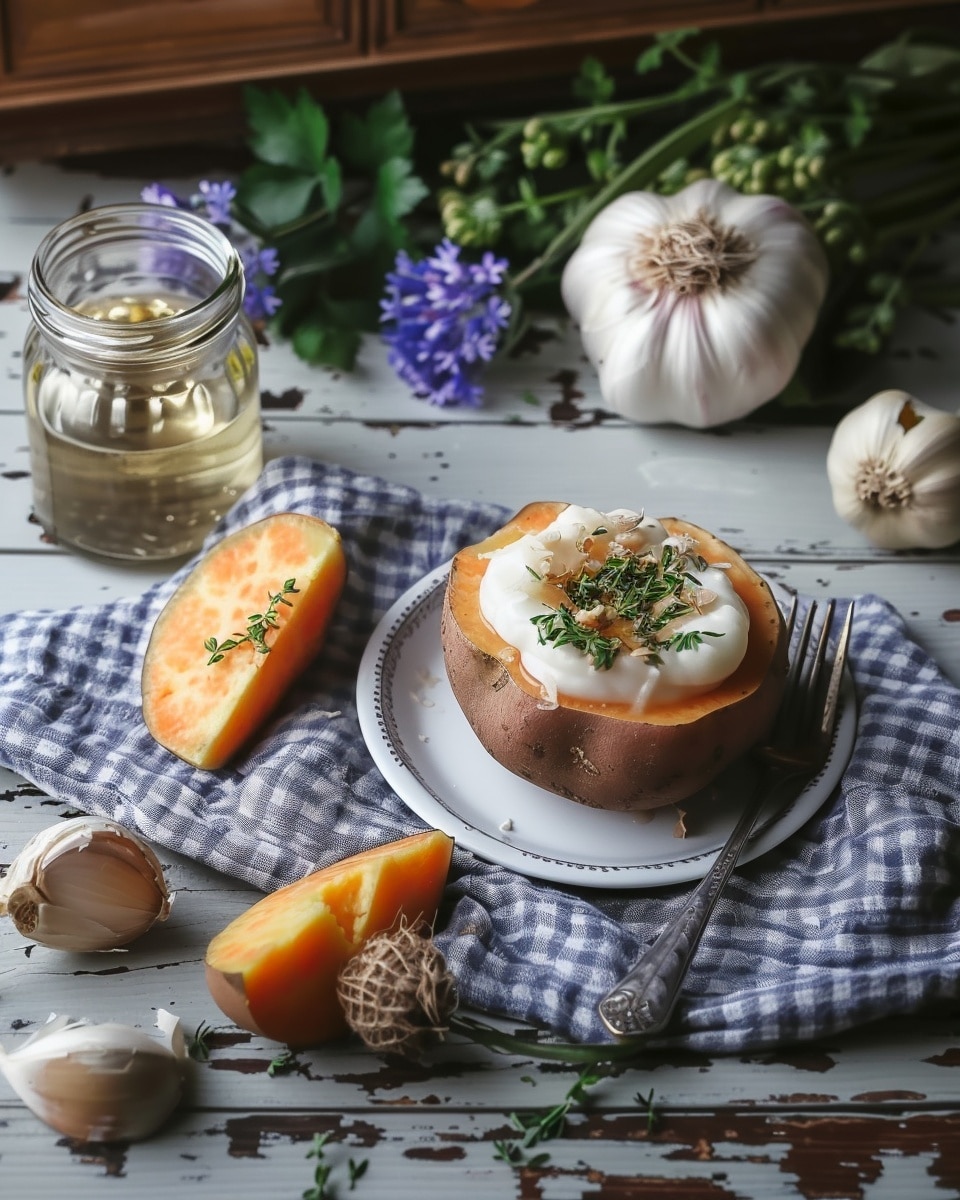 These sweet potatoes are filling enough for a light meal on their own, especially when topped with yogurt, herbs, or a hearty vegetable filling. They also pair well with salads, soups, roasted vegetables, or grilled chicken.
