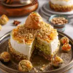 Baklava cheesecake is the perfect fusion dessert, combining the richness of cheesecake with the delicate layers and flavors of classic baklava. With its crisp phyllo base, creamy filling, and aromatic honey-nut topping, it delivers elegance and indulgence in every slice. Whether for a celebration or a special family gathering, this dessert is guaranteed to impress.