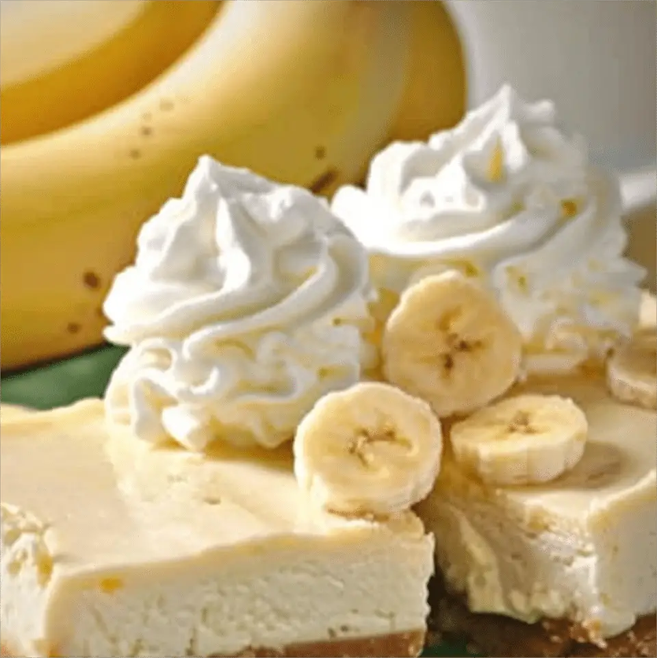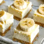 No-bake banana cream cheesecake bars with a buttery vanilla wafer crust and a creamy banana-flavored filling. Perfectly chilled and easy to slice for a crowd-pleasing dessert.