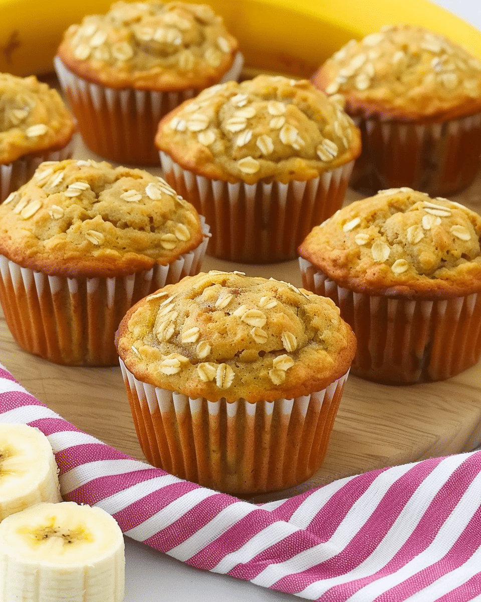 Wholesome and soft Banana Oat Muffins made with ripe bananas and hearty oats. These muffins are naturally moist, lightly sweetened, and perfect for breakfast or snacking.