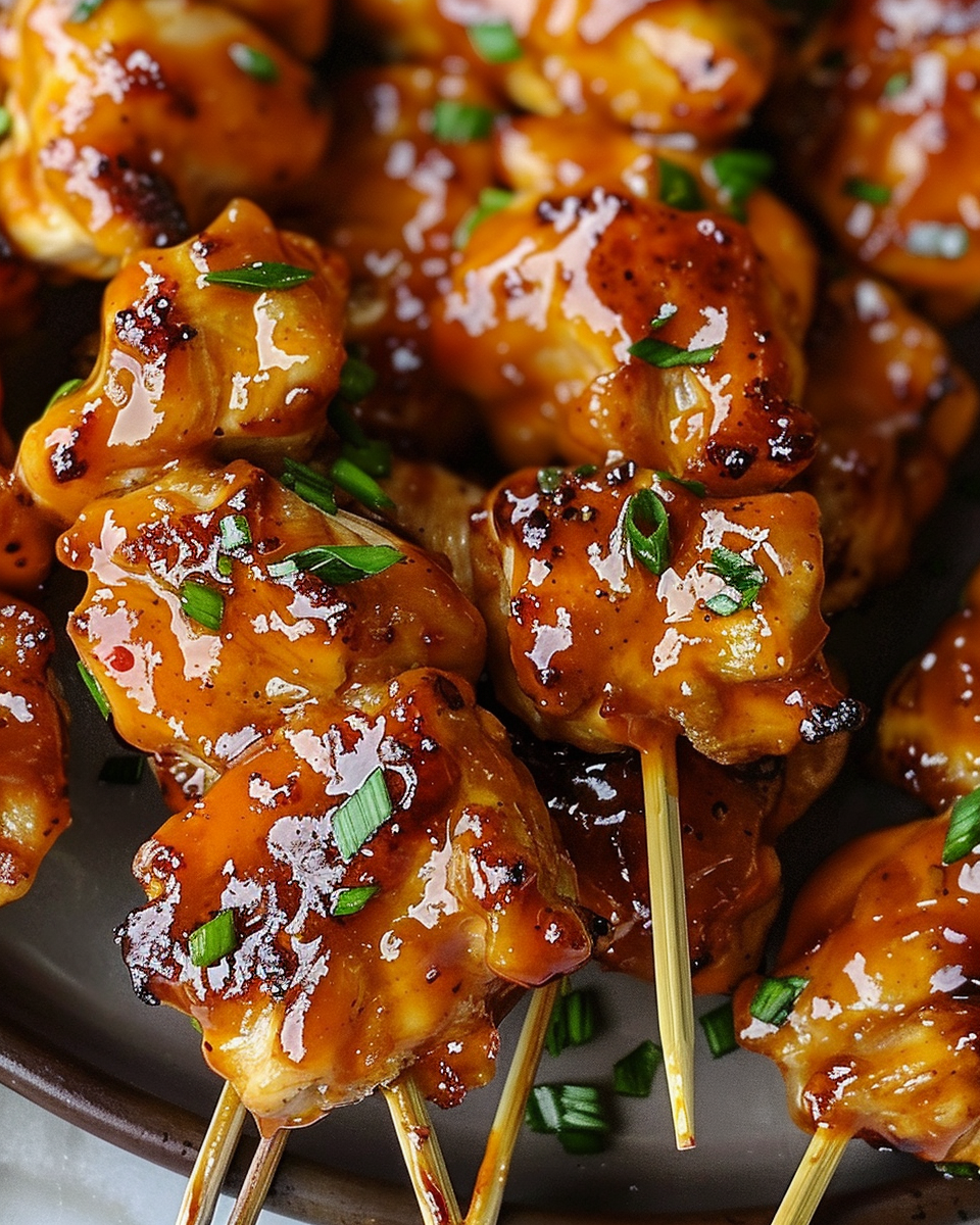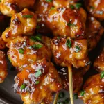 Juicy chicken cubes are seasoned, skewered, and grilled (or baked/air‑fried) to perfection, then generously coated with a creamy, tangy, and slightly sweet “bang bang” sauce that balances heat and flavor for a dish that works as appetizer, snack, or main.