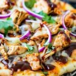 Store leftover BBQ Chicken Flatbread Pizza in an airtight container in the refrigerator for up to 3 days. To reheat, place the slices in a 375°F oven for about 5 to 8 minutes, or until warmed through and crisp again. An air fryer also works very well for reheating and helps keep the flatbread from becoming soft. While the microwave can be used, it may make the crust less crisp.