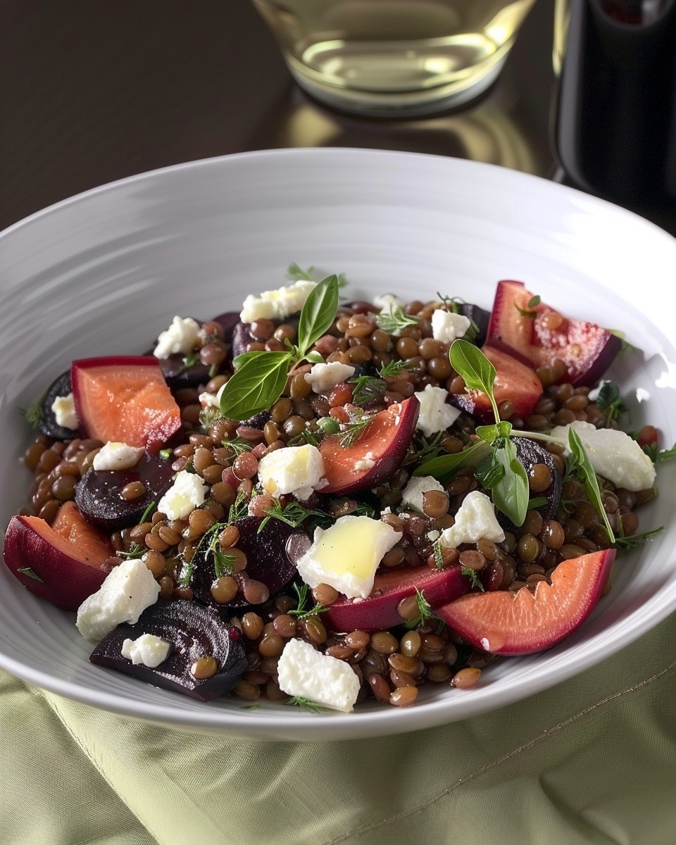A vibrant beetroot lentil salad combining sweet roasted beets, hearty lentils, and a zesty dressing. This nourishing dish is fresh, satisfying, and perfect as a light meal or side.