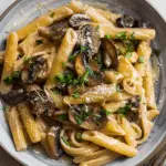 This creamy miso mushroom pasta features golden sautéed mushrooms folded into a velvety miso-parmesan cream sauce, finished with lemon and thyme. It’s quick, comforting, and packed with umami-rich flavor.
