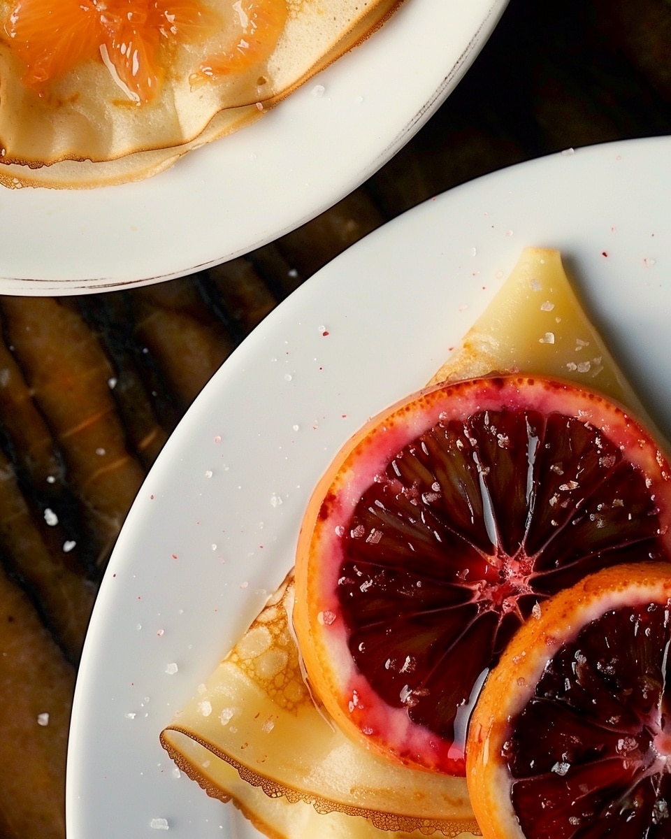 This recipe is simple yet impressive, making it ideal for both beginners and experienced cooks. The crêpes are soft and tender, while the blood orange sauce adds a beautiful balance of sweetness and tanginess. It uses fresh, natural ingredients and comes together quickly, making it perfect for a last-minute dessert that still feels luxurious. The vibrant color of blood oranges also makes the dish visually stunning.