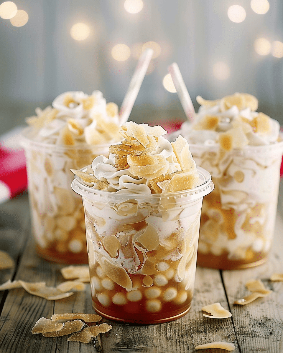 Spoon the whipped cream topping on the surface. Serve immediately and enjoy cold.