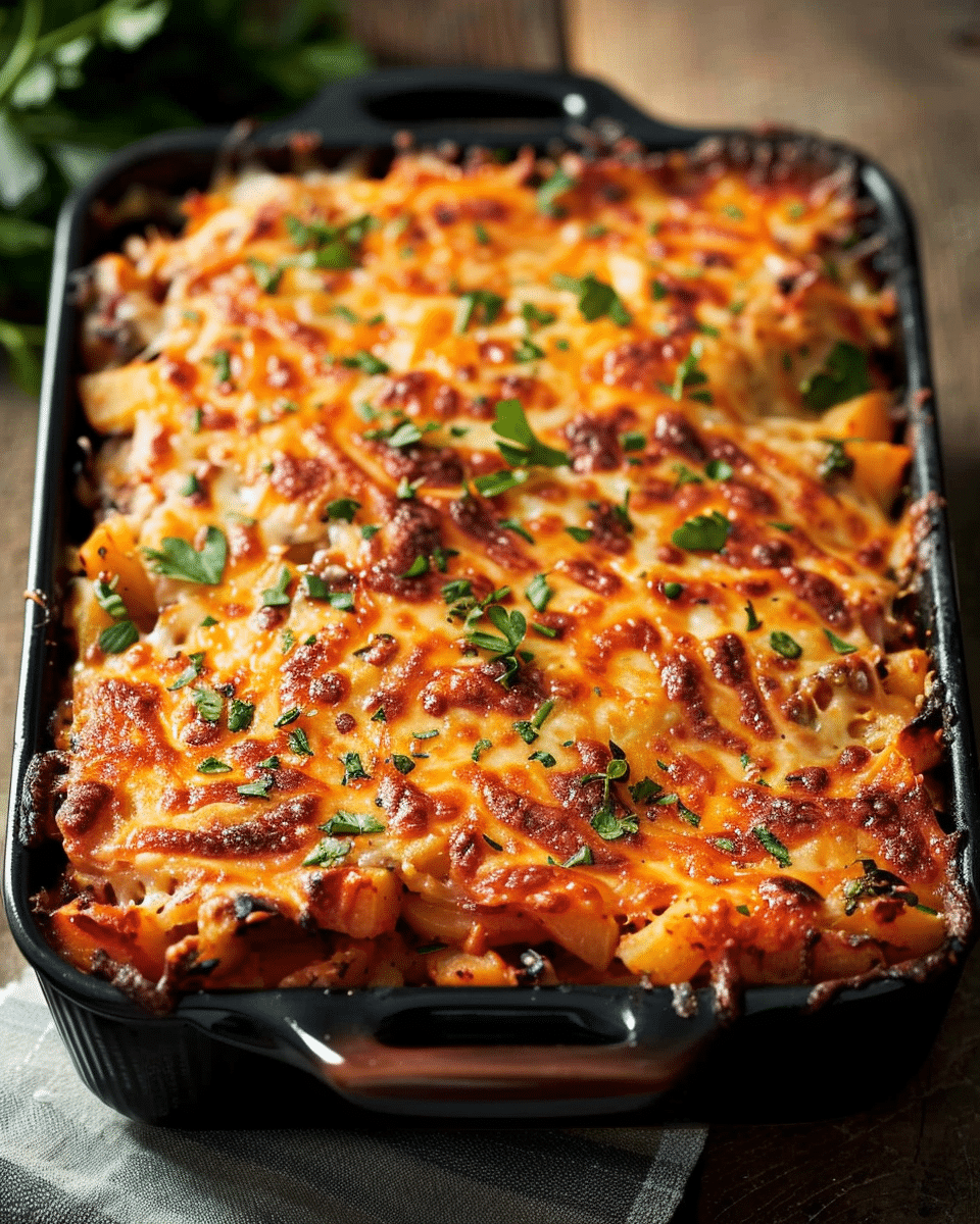 Buffalo Chicken and Roasted Potato Casserole is a spicy, cheesy, and hearty comfort dish made with crispy roasted potatoes, marinated chicken, and melty cheese. It’s an easy, one-pan meal that brings the bold flavors of Buffalo wings into a satisfying casserole format.