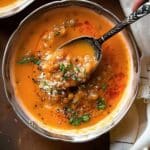 Buttered Tomato Soup with Lentils and Fennel is a velvety, slow-simmered soup made with caramelized fennel, tomatoes, and red lentils that naturally create a creamy texture without blending. Rustic yet refined, this comforting bowl is hearty, flavorful, and perfect for meal prep.