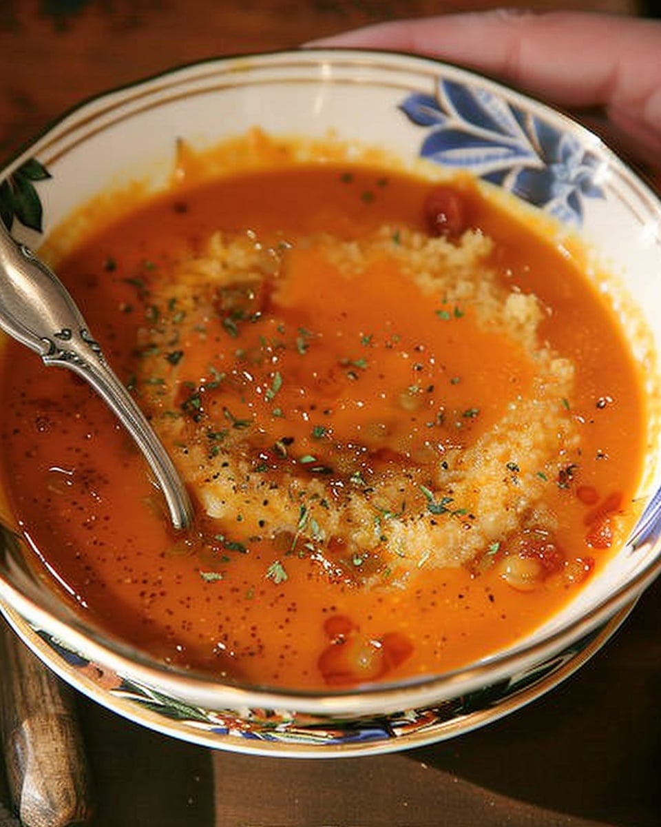 A velvety, dairy-free tomato soup enriched with red lentils and fragrant fennel, this comforting bowl delivers deep flavor and a creamy texture without ever touching a blender. Pantry staples transform into a luxurious, slow-simmered soup that feels both rustic and refined.
