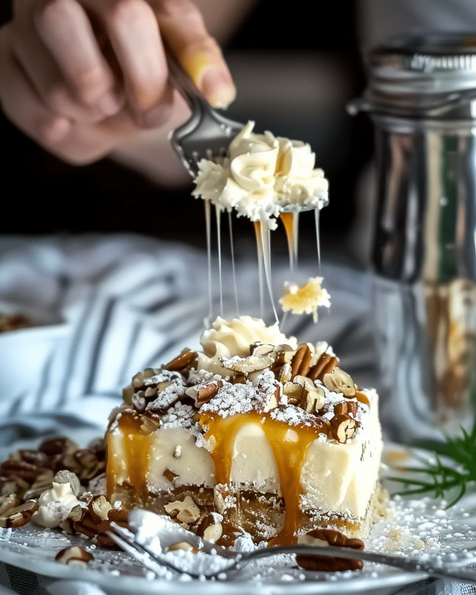 You can add a layer of whipped topping once the cake has fully cooled for extra creaminess. Chopped toasted pecans can be sprinkled on top for added crunch. For a deeper caramel flavor, drizzle extra caramel sauce just before serving.
