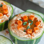 These Carrot Hummus Cucumber Cups are a light, refreshing appetizer made with creamy roasted carrot hummus served in crisp cucumber cups. Perfect for parties, picnics, or healthy snacking, they offer a beautiful balance of sweet, savory, and tangy flavors with a satisfying crunch.