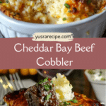 Cheddar Bay Beef Cobbler is a hearty, comforting dish that combines tender seasoned beef, a rich savory gravy, and a fluffy cheddar biscuit topping baked until golden. It’s a satisfying meal that feels cozy and indulgent while still being simple enough for a family dinner.