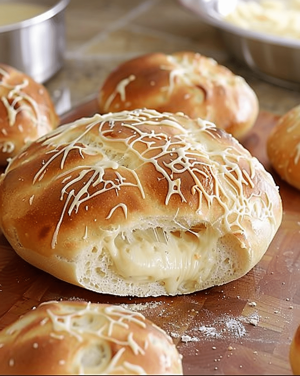 Soft, fluffy bread buns stuffed with gooey melted cheese — a perfect comfort food for breakfast, snacks, or as a side dish.