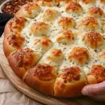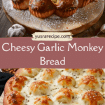 This cheesy garlic monkey bread is a warm, soft, and irresistibly buttery pull-apart bread made from tender dinner rolls dipped in garlic butter and topped with a generous layer of melted mozzarella. It bakes up golden on the outside, fluffy on the inside, and delivers cheesy, garlicky goodness in every bite. Whether served as an appetizer, side dish, or party favorite, it’s a guaranteed crowd-pleaser.