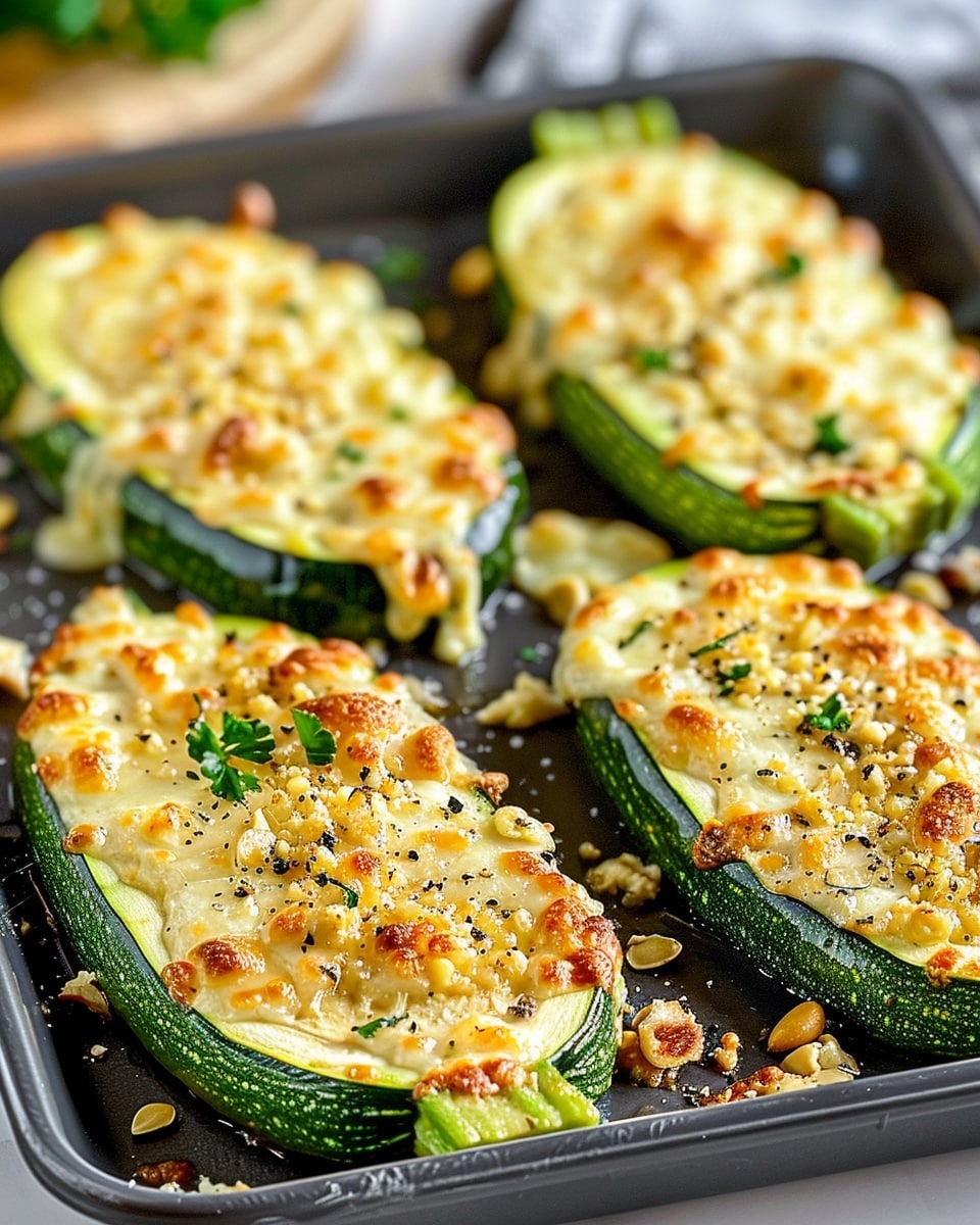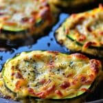 Thick-cut zucchini slices roasted until tender and topped with a golden blend of melted mozzarella, Parmesan, garlic, and herbs. This low-carb, flavorful dish works perfectly as a hearty side or light main course.