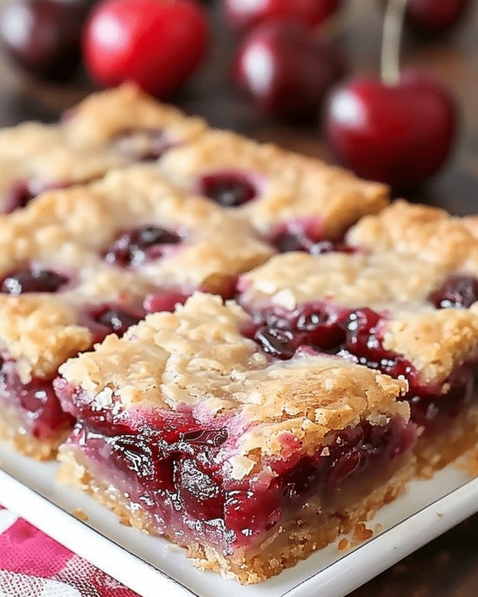 Cherry Bars are a timeless dessert that combines buttery layers with a sweet and tangy cherry filling, finished with a light glaze. Easy to prepare and perfect for sharing, these bars are sure to impress at family gatherings, parties, or whenever you crave something sweet and comforting.