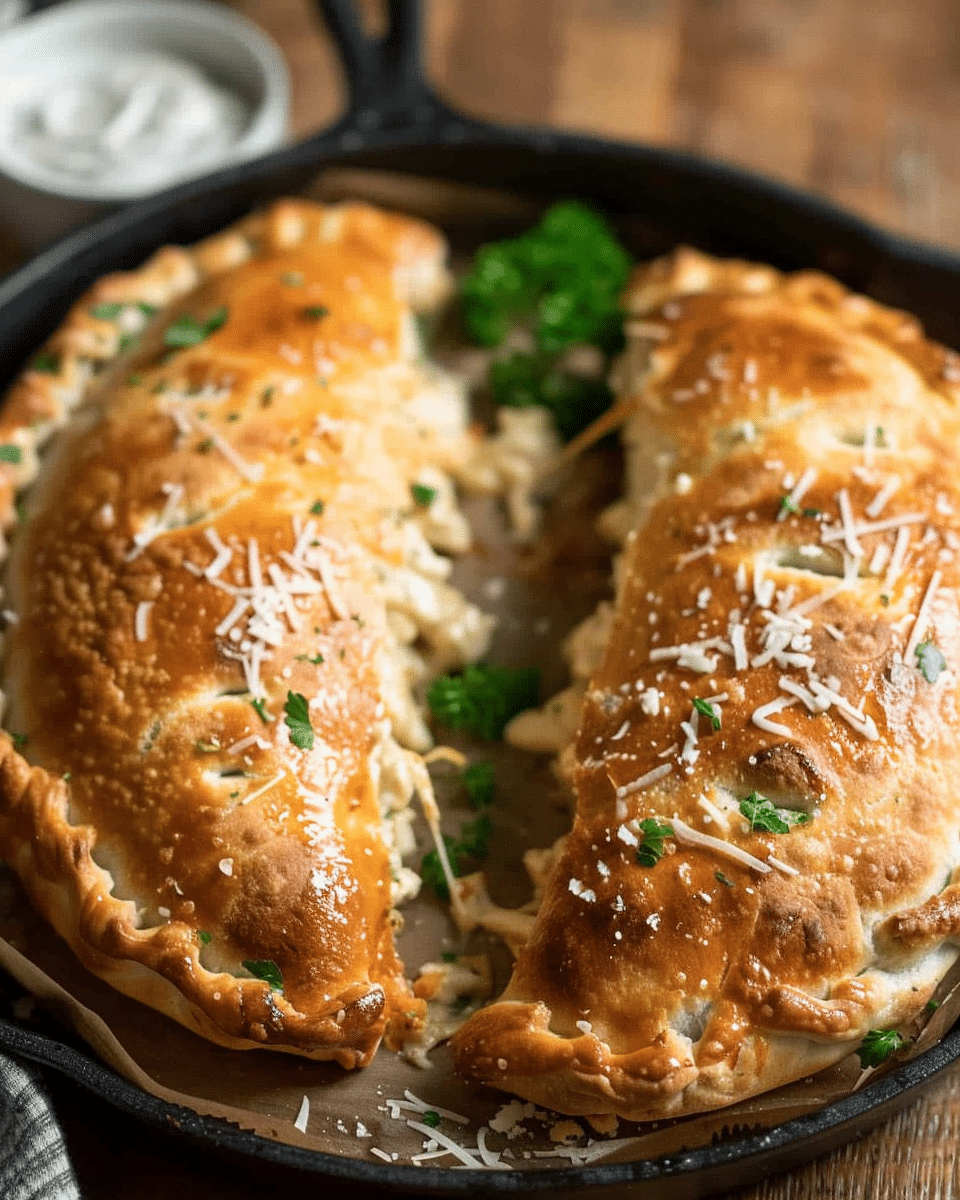This dish is a cozy, indulgent twist on a classic Italian favorite — tender shredded chicken tossed in creamy Alfredo sauce, folded into pizza dough pockets, and air-fried to golden perfection. Crisp on the outside, oozy and rich inside, these calzones deliver comfort with minimal fuss.