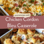 This casserole offers the familiar flavors of Chicken Cordon Bleu in a convenient, one-pan bake. It’s quick to prepare, easy to customize, and a guaranteed crowd-pleaser. The creamy sauce brings everything together, while the crispy topping adds just the right amount of crunch. Whether you’re feeding a family or meal-prepping for the week, this recipe is a warm, satisfying choice.