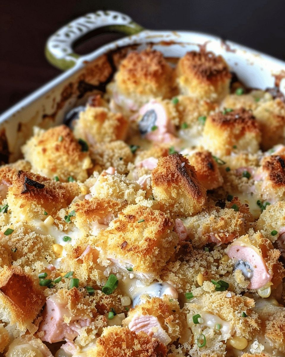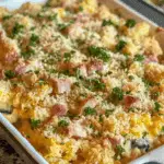 A cozy, simplified version of the classic Chicken Cordon Bleu—this casserole features shredded chicken, Swiss cheese, creamy sauce, and a buttery breadcrumb topping. It’s rich, flavorful, and perfect for weeknight dinners.
