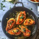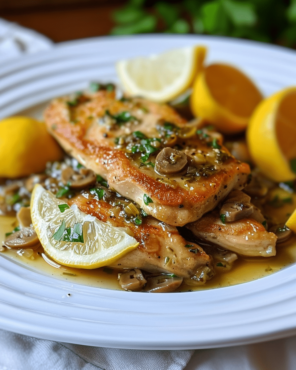 This chicken piccata features tender chicken cutlets simmered in a bright, lemony caper sauce. It’s a quick, flavorful dish made without wine—perfect for weeknights or elegant dinners, and completely halal.