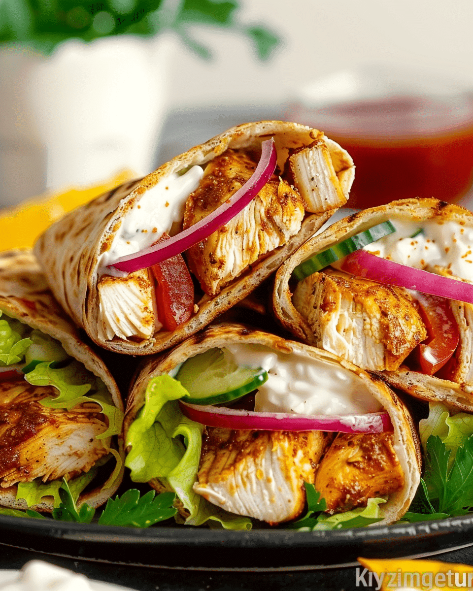 These Chicken Shawarma Wraps are loaded with bold Middle Eastern flavor, featuring tender spiced chicken, creamy garlic tahini sauce, and crisp fresh toppings—all wrapped in warm pita or flatbread. Perfect for a quick and satisfying meal.