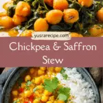 Chickpea & Saffron Stew is a richly aromatic, golden-hued dish featuring tender chickpeas simmered in a saffron-infused tomato broth with warm spices. Wholesome, comforting, and perfect for plant-based meals.