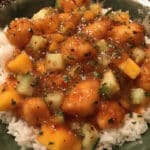 A vibrant, flavor-packed rice bowl that balances spicy chili crisp chicken with a refreshing mango–herb salad. Each bite brings together heat, sweetness, and bright citrus notes for a complete and satisfying meal.