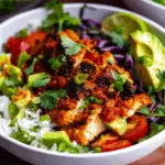 These chili lime chicken bowls are vibrant, zesty, and perfect for both weeknight dinners and meal prep. Tender marinated chicken, fresh vegetables, fluffy rice, and a refreshing cilantro lime vinaigrette come together for a balanced and flavor-packed meal that’s easy to customize.