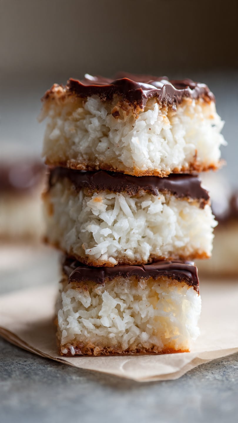 These chocolate coconut bars feature a soft, cocoa-flavored base topped with rich chocolate icing and sprinkled with coconut. They’re easy to make and perfect for sharing or afternoon treats.