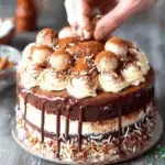 Chocolate & Coconut Truffle Cake is a decadent dessert featuring rich, moist chocolate layers filled and frosted with a creamy dark chocolate truffle and coconut filling. Finished with a snowy topping of shredded coconut, it’s an elegant, make-ahead-friendly cake perfect for celebrations or indulgent weekends.