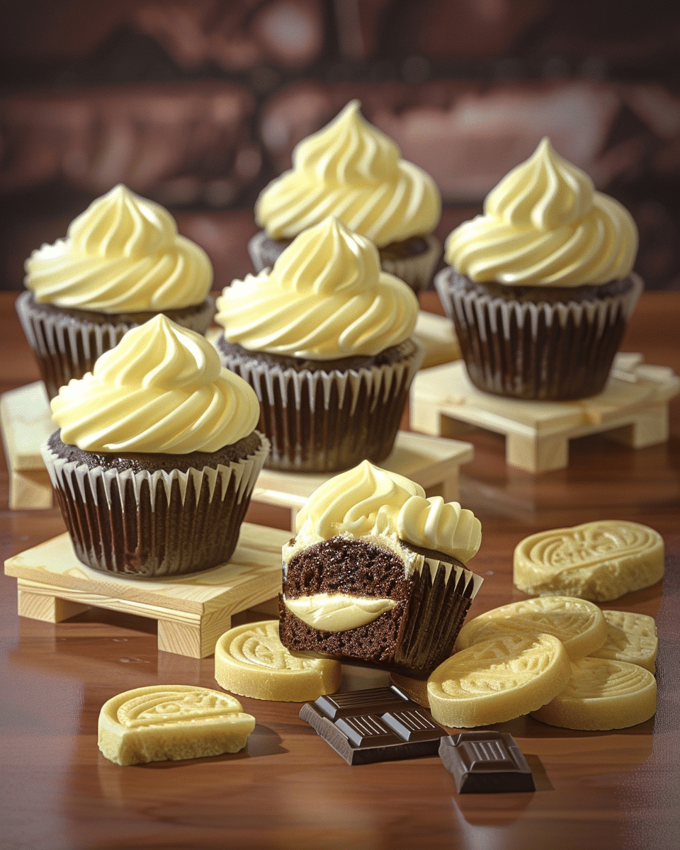 These rich and moist chocolate cupcakes are made with real milk chocolate and topped with a smooth white chocolate ganache. Perfect for parties or a sweet indulgence, they are easy to prepare and incredibly delicious.