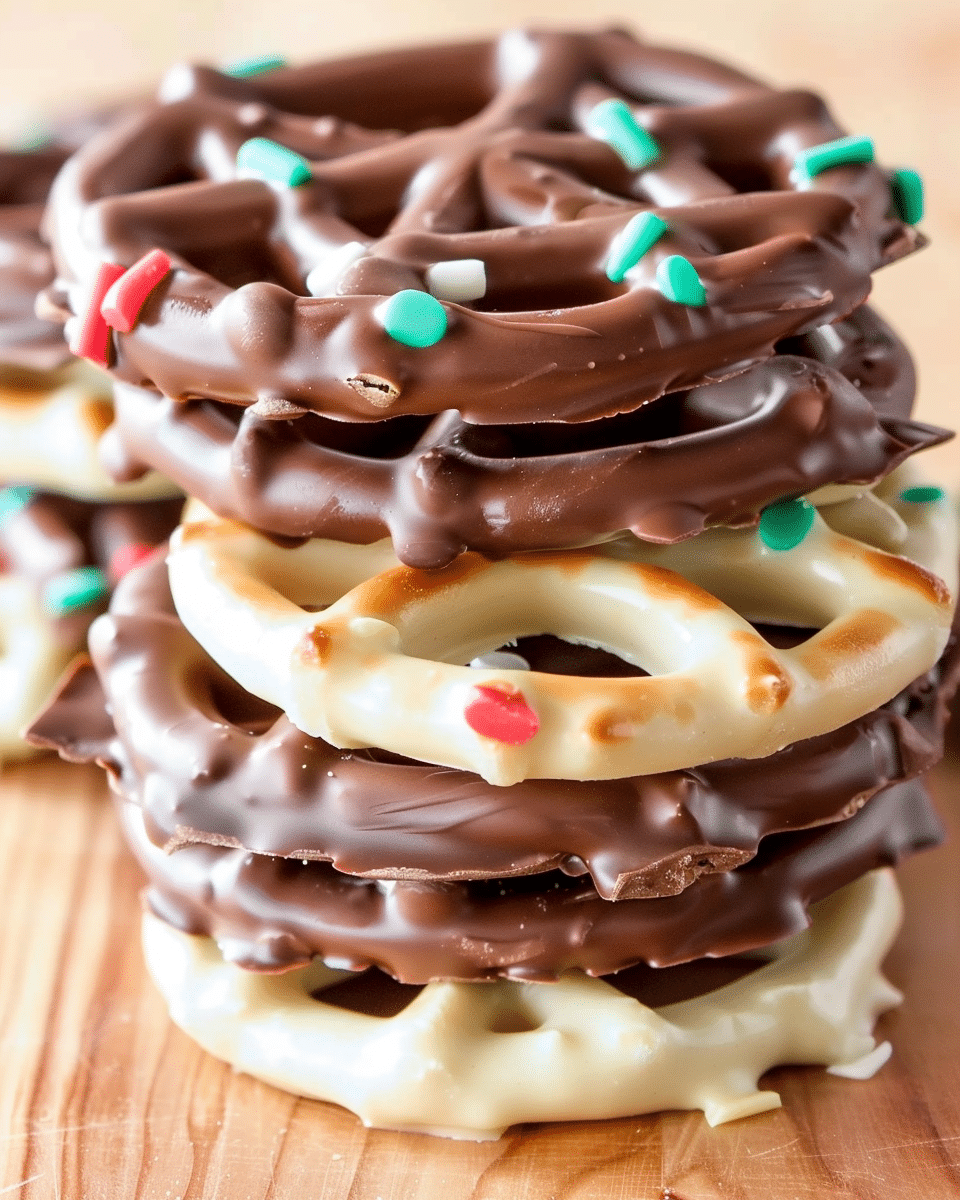 Chocolate Dipped Peanut Butter Pretzels are a sweet-and-salty no-bake treat made with mini peanut butter cups, crispy pretzels, and smooth white chocolate coating. Perfect for holidays, parties, or edible gifts.