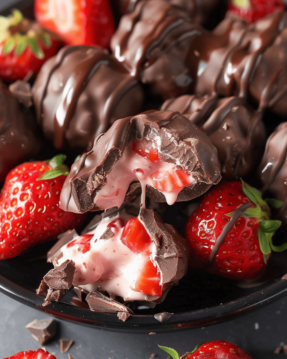 I keep this dessert in my rotation because it’s endlessly reliable and ridiculously simple. I use real strawberries for bright flavor, Greek yogurt for creaminess and protein, and a super-thin chocolate coating for that satisfying snap. I don’t bake, I barely “cook,” and I still end up with a treat that feels special every single time.