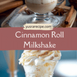 This cinnamon roll milkshake blends vanilla ice cream, real cinnamon roll pieces, warm spices, and a hint of cream cheese into a creamy, indulgent drink that tastes just like a cinnamon roll in a glass.