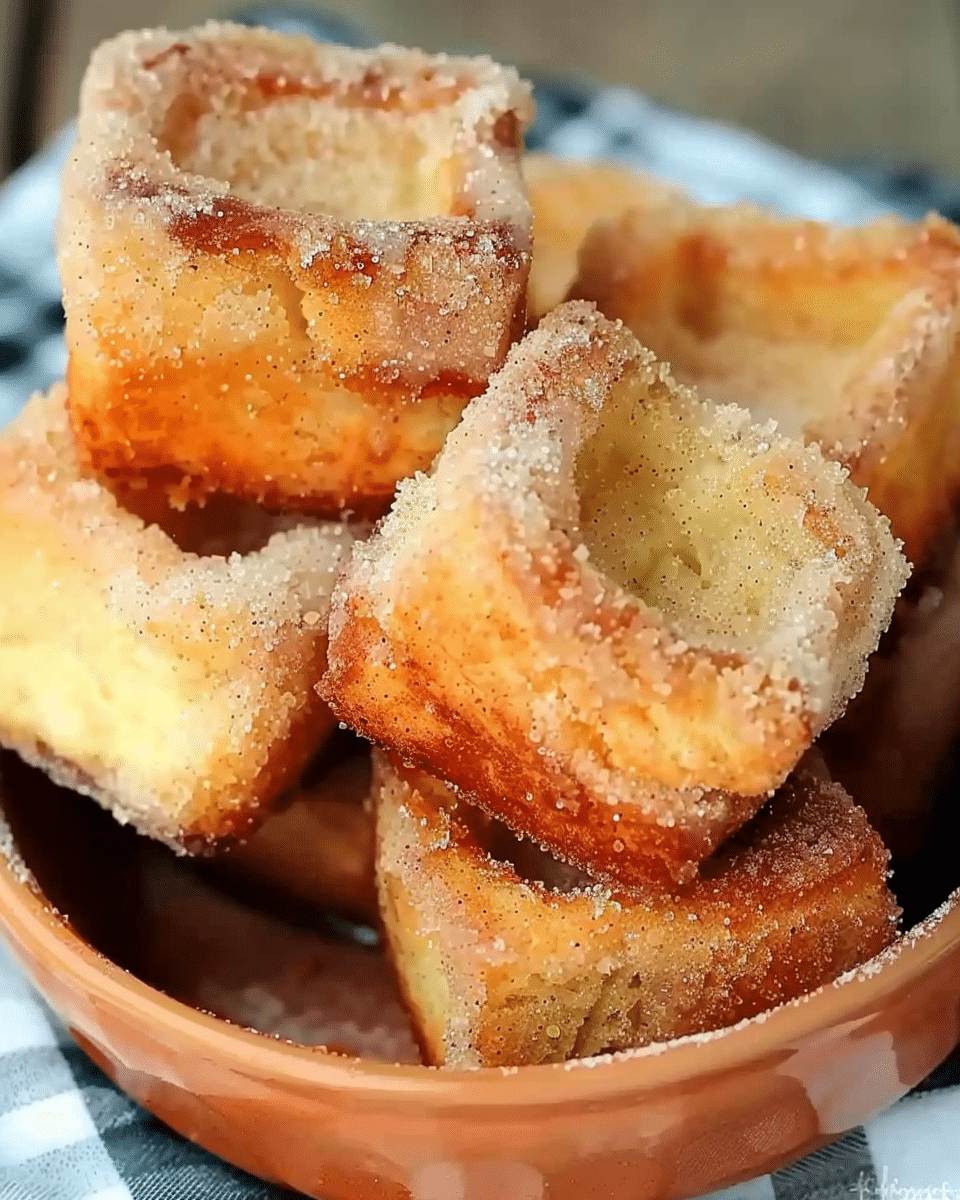 These warm, bite-sized pieces of biscuit dough are coated in melted butter and a generous cinnamon-sugar mixture, then baked or broiled to golden perfection. A simple, comforting treat that’s perfect for breakfast, a snack, or dessert.