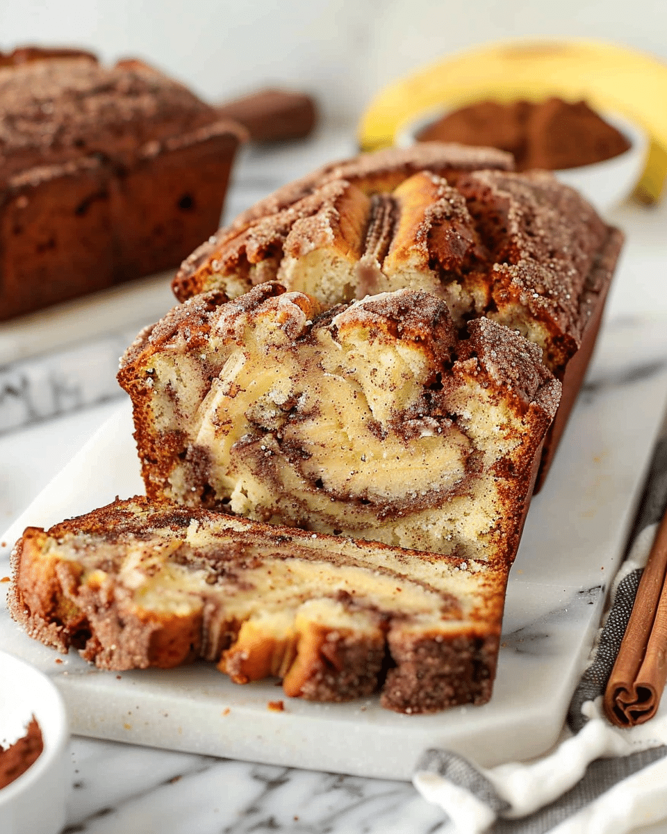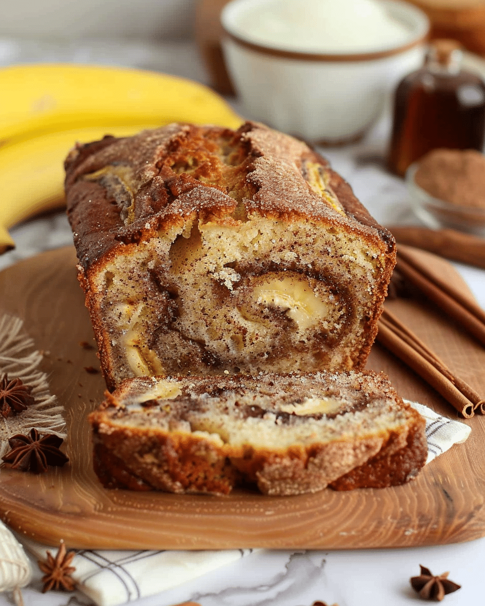 Cinnamon Swirl Banana Bread is a moist, buttery banana loaf layered with a rich cinnamon-sugar swirl. Perfect for breakfast, snacking, or dessert, it brings extra flavor and visual appeal to a classic favorite.